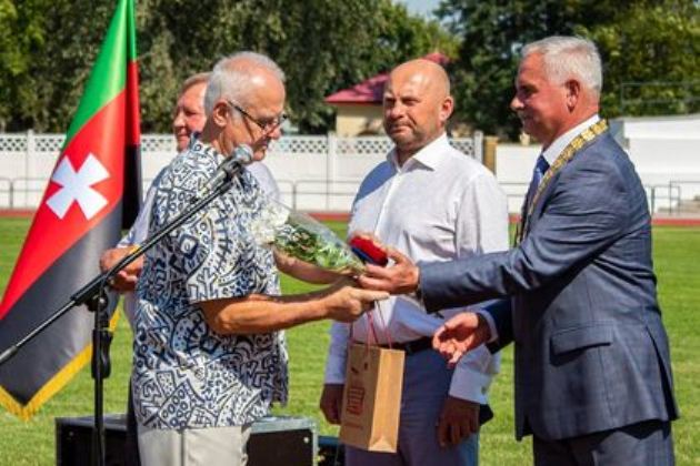 Міський голова Віктор Сапожніков разом із гостями перерізали стрічку оновленого стадіону імені сестер Абашидзе – уродженок Нововолинська, майстрів спорту Міжнародного класу з легкої атлетики.