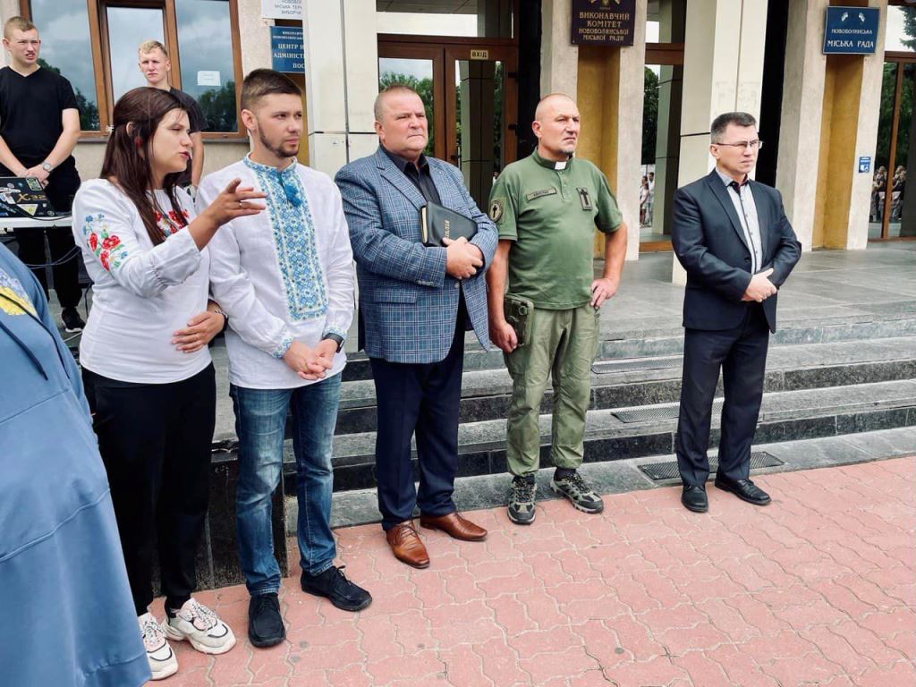 У заході взяли участь родини загиблих військовослужбовців, Нововолинський міський голова Борис Карпус, волонтери, працівники виконавчого комітету та представників різних релігійних конфесій.