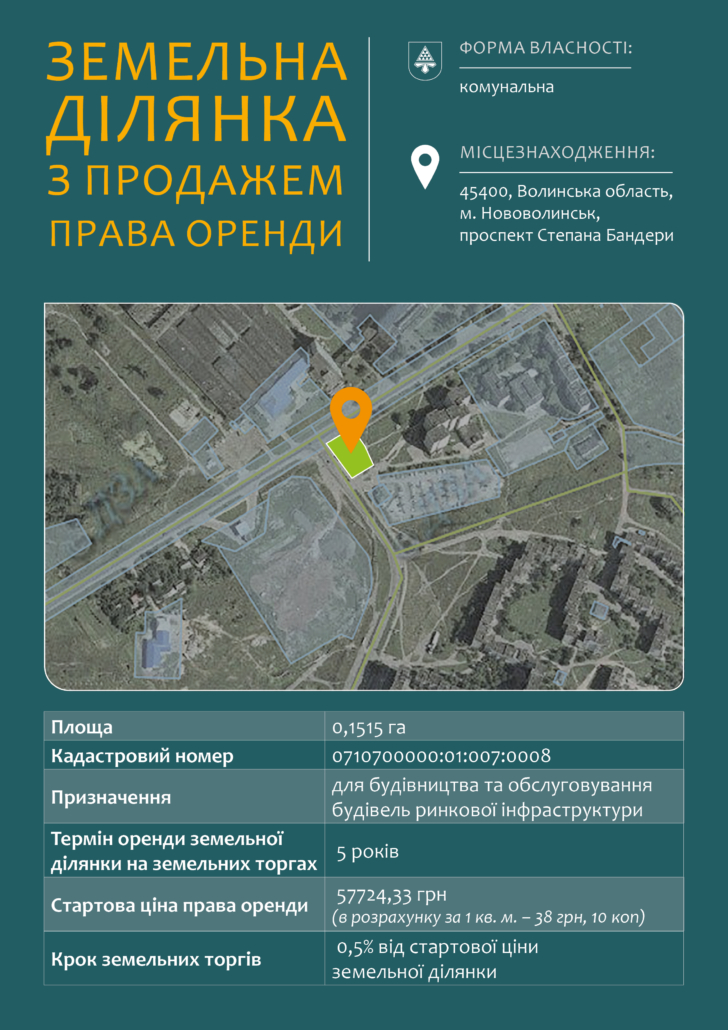 Місце проведення земельних торгів: Нововолинськ, проспект Дружби, 27 (сесійний зал Нововолинської міської ради).