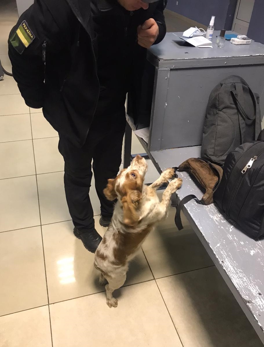 До проведення спільного з митниками огляду багажу було залучено службового собаку прикордонників, спеціально натренованого на пошук наркотиків. Пес вказав правоохоронцям на одну із сумок. Як з’ясувалося згодом – не даремно. Всередині сумочки 28-річного мешканця Чернігівщини знаходився поліетиленовий пакет з речовиною рослинного походження сіро-зеленого кольору.