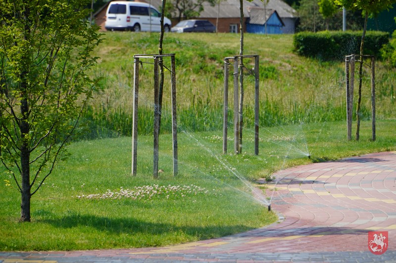 У понаднормову спеку комунальні служби у посиленому режимі проводять поливання трави на міському стадіоні, а також газонів і декоративних насаджень у парку на острові “Риловиця”. Зокрема доводять до відома відвідувачів парку, що з 22:00 до 7:00 на території острова працюватимуть поливні системи. Наявність системи забезпечує рівномірність й оптимальність зволоження при економному використанні води.