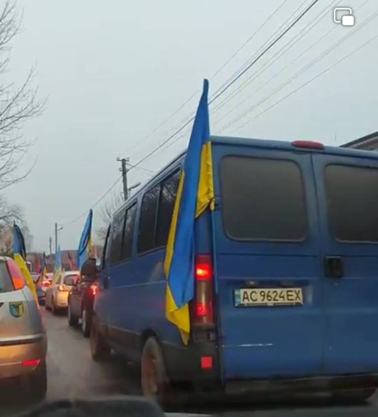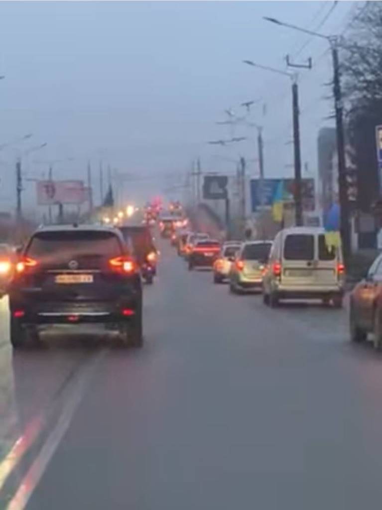 Довга колона автомобілів з державними прапорами супроводжувала траурний кортеж до батьківської домівки.
