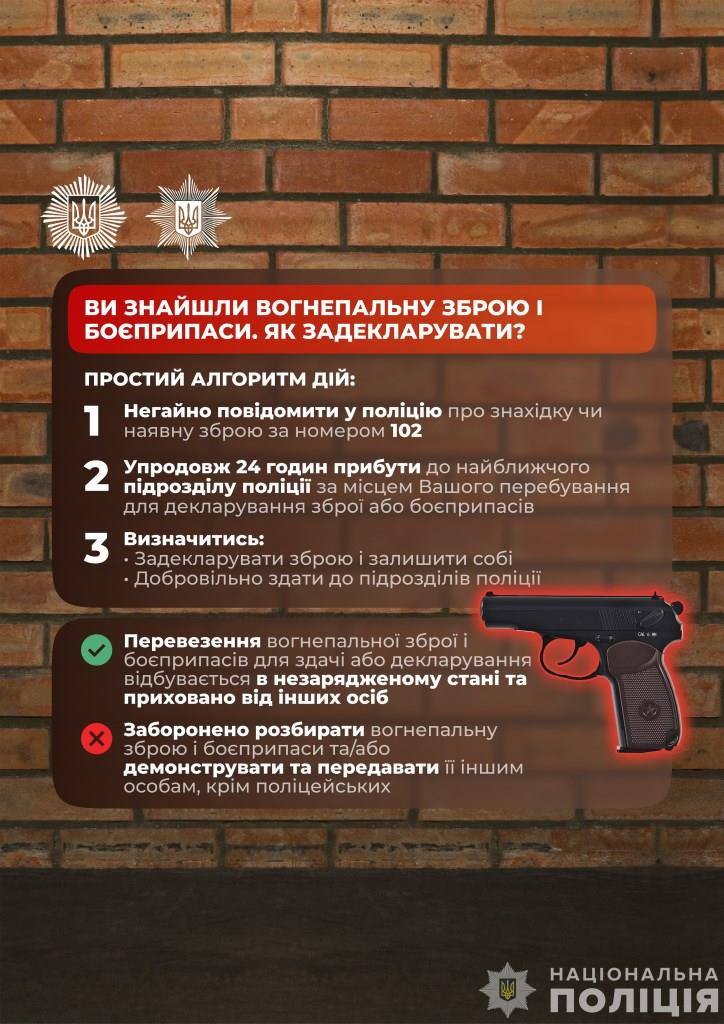 У поліції Волині закликають декларувати та відповідально зберігати отриману та знайдену вогнепальну зброю і боєприпаси до неї