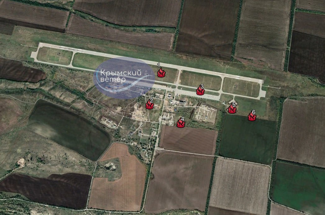 Моніторингова група “Кримського вітру” фіксує пожежі в районі злітно-посадкової смуги та стоянок літаків.