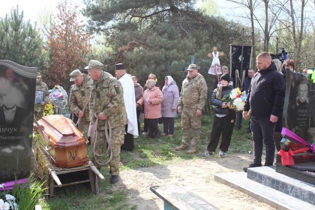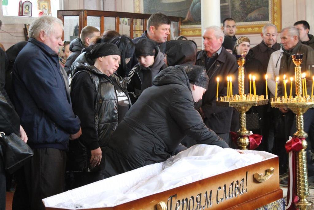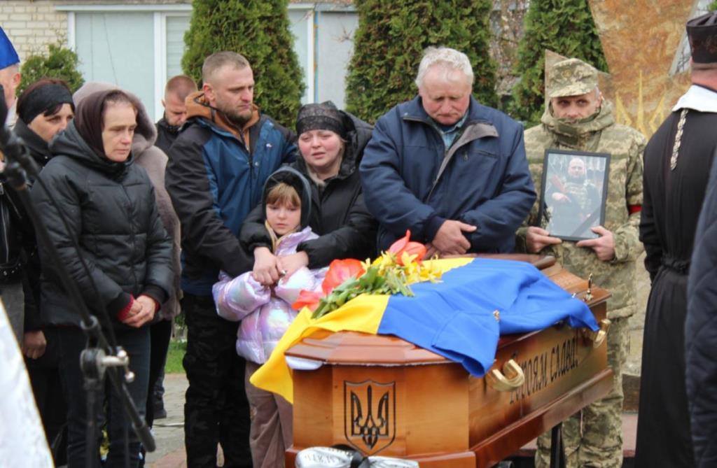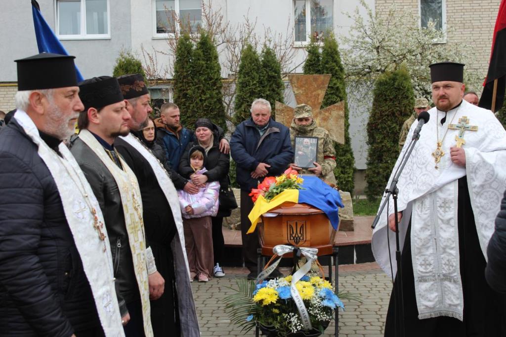 Спільна молитва, останнє прощання, залпи військових і національний стяг, котрим була вкрита домовина загиблого, передають маленькій доньці Героя. А зболене тіло загиблого приймає у свої холодні обійми рідна земля.