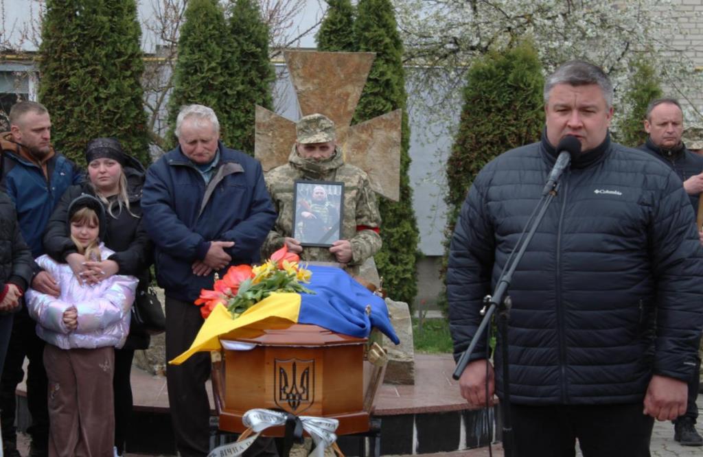 «У глибокій зажурі посивілий батько. Не приховує сліз брат загиблого Андрій. Він теж захищає Україну і добре знає, як болить кожна втрата, особливо рідної людини. Та найбільше крається серце, коли бачиш, як прощається з татом маленька донечка. Війна зробила її сиротою, тепер тато буде їх з мамою захищати з небес.