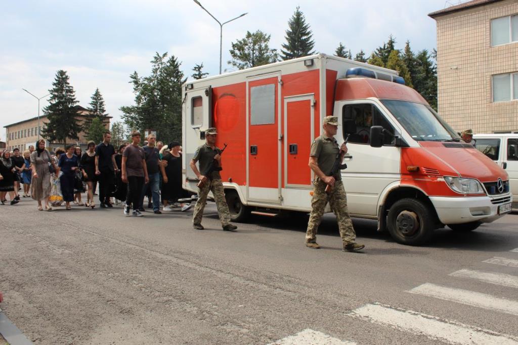 Велелюдною процесією провадили Героя до храму Архістратига Михаїла, де священники Православної Церкви України відспівали загиблого воїна.