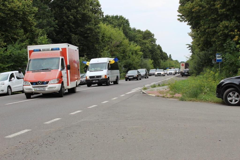 Навколішки зустрічали загиблого земляки у центрі Рожища, де біля пам’ятного знаку Борцям за волю та незалежність України відбулася громадська панахида.