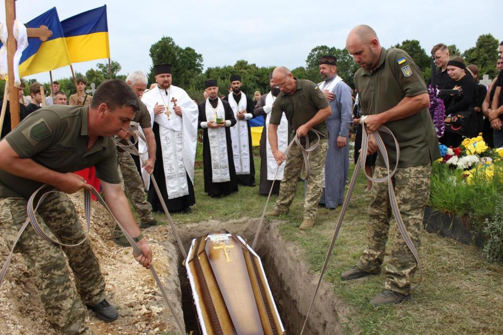Востаннє прощаються з Героєм рідні, близькі, друзі, односельці і під тужливі мелодії військового оркестру траурний кортеж вирушає до місця останнього спочинку Героя.