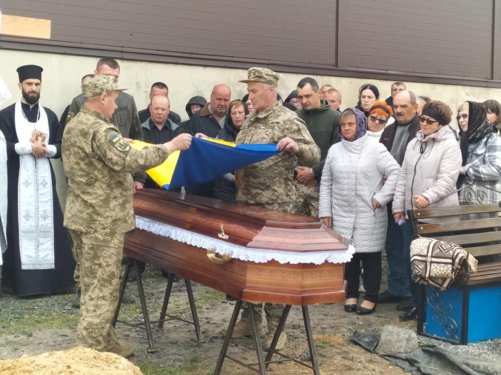 З усіма військовими почестями Героя поховали на Алеї Слави міського кладовища. А синьо-жовтий стяг, яким була вкрита домовина, військові передали вдові загиблого, як символ вільної та незалежної держави, за яку віддав життя наш мужній земляк.