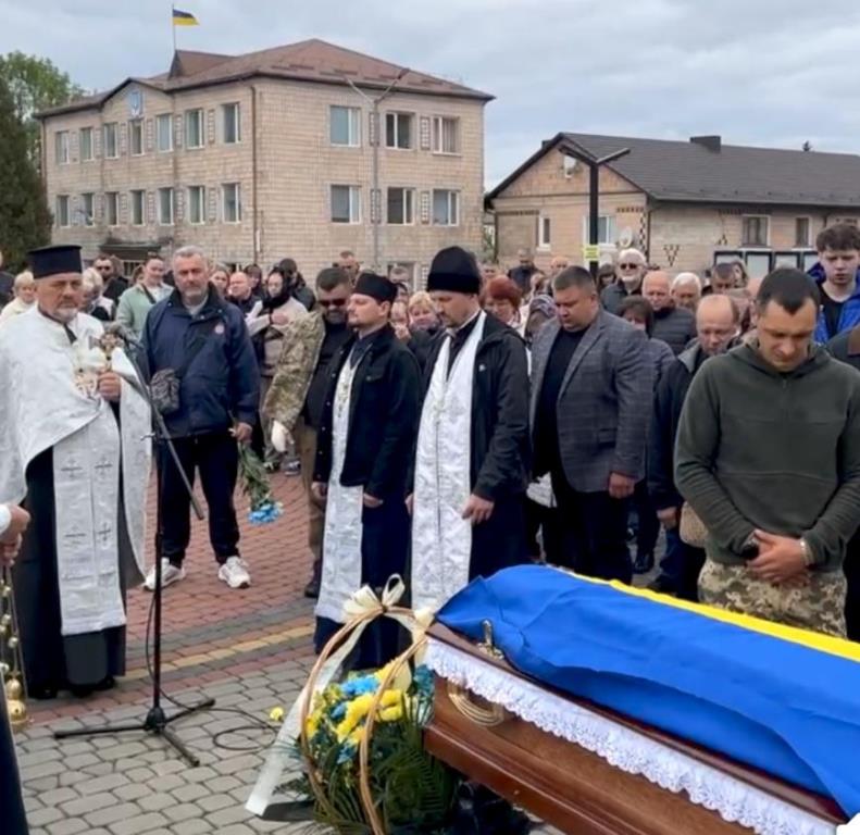 Рідні, друзі, побратими та просто жителі громади прийшли, аби віддати шану та попрощатися з загиблим. Біля пам’ятного знака Борцям за волю та незалежність України відбулася громадська панахида.