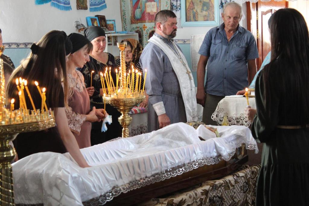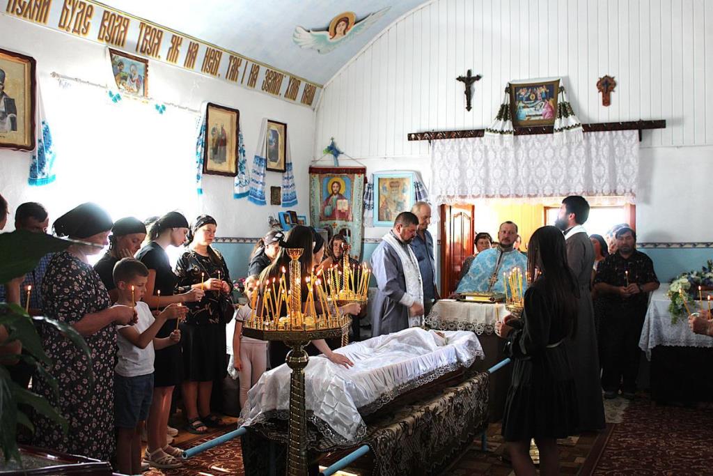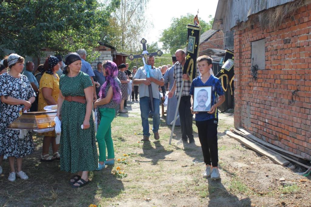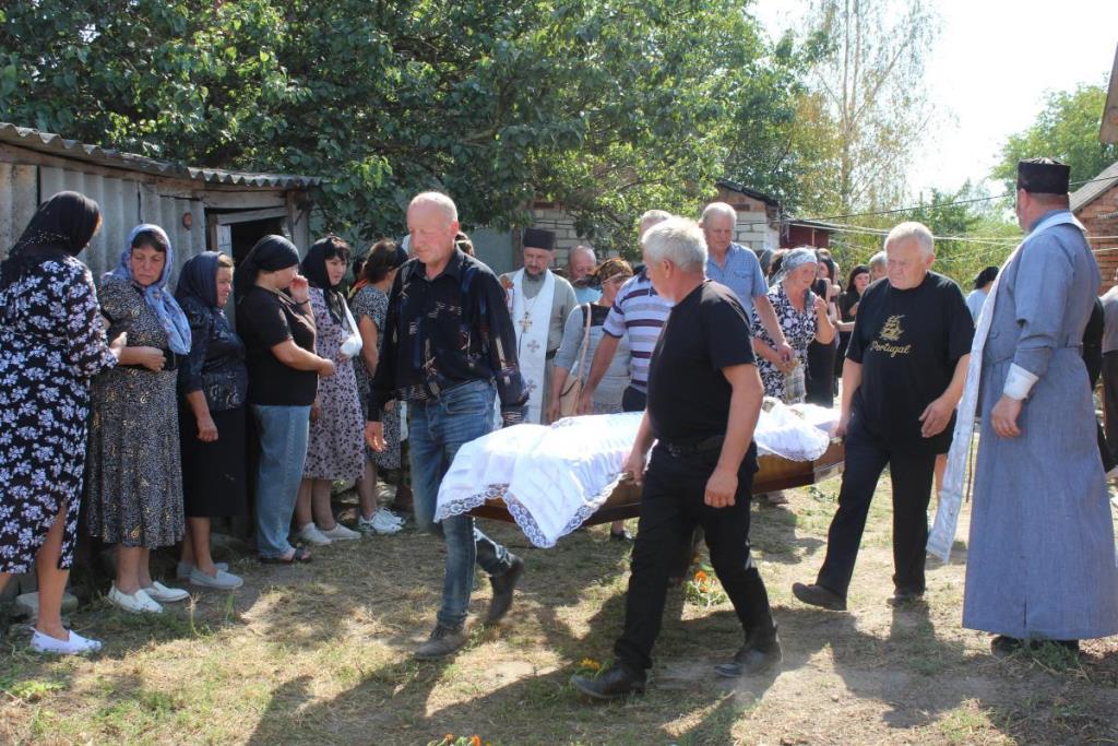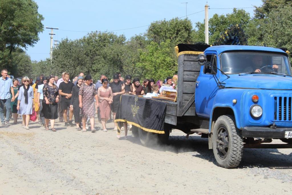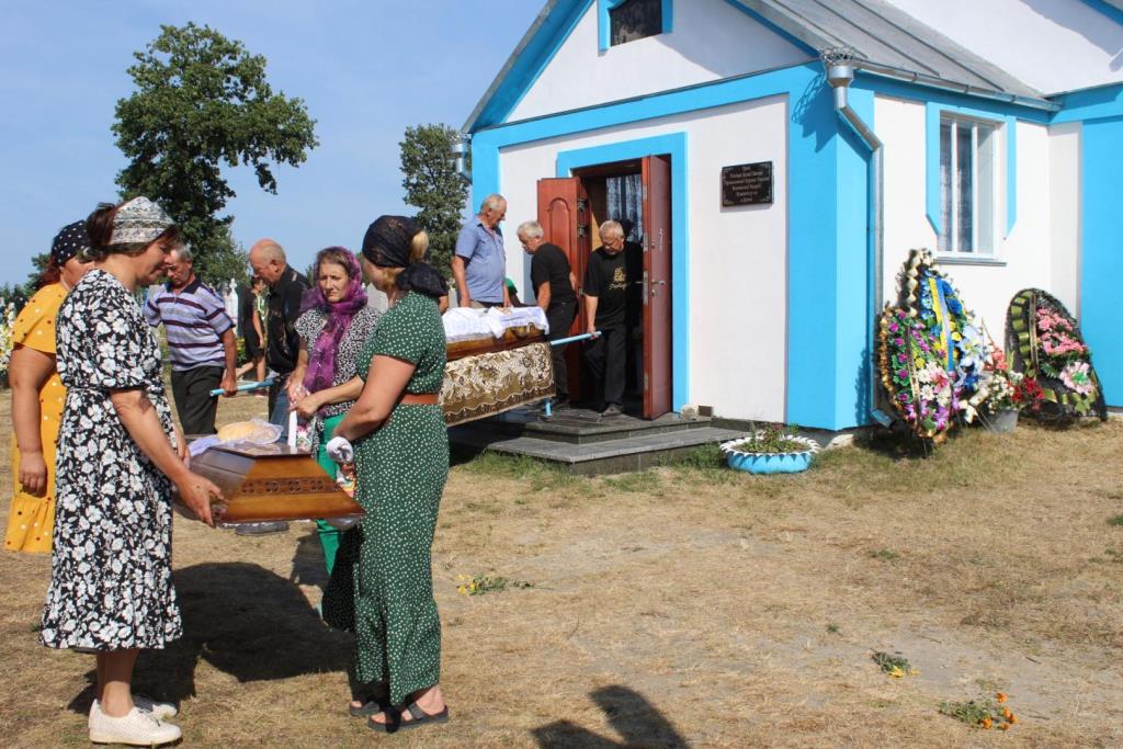 Після останнього прощання у рідному домі траурна процесія вирушила до сільського храму, де священники Православної Церкви України відспівали померлого воїна Віктора Ковальчука.