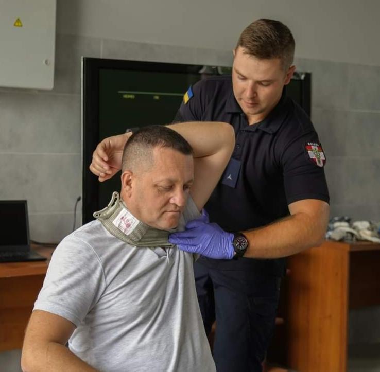Фельдшер піротехнічного відділення Богдан Стасюк навчав рятувальників-добровольців першій медичній допомозі при кровотечі, кожен охочий міг відпрацювати накладання турнікету, накладання стискаючої пов’язки, тампонування рани.