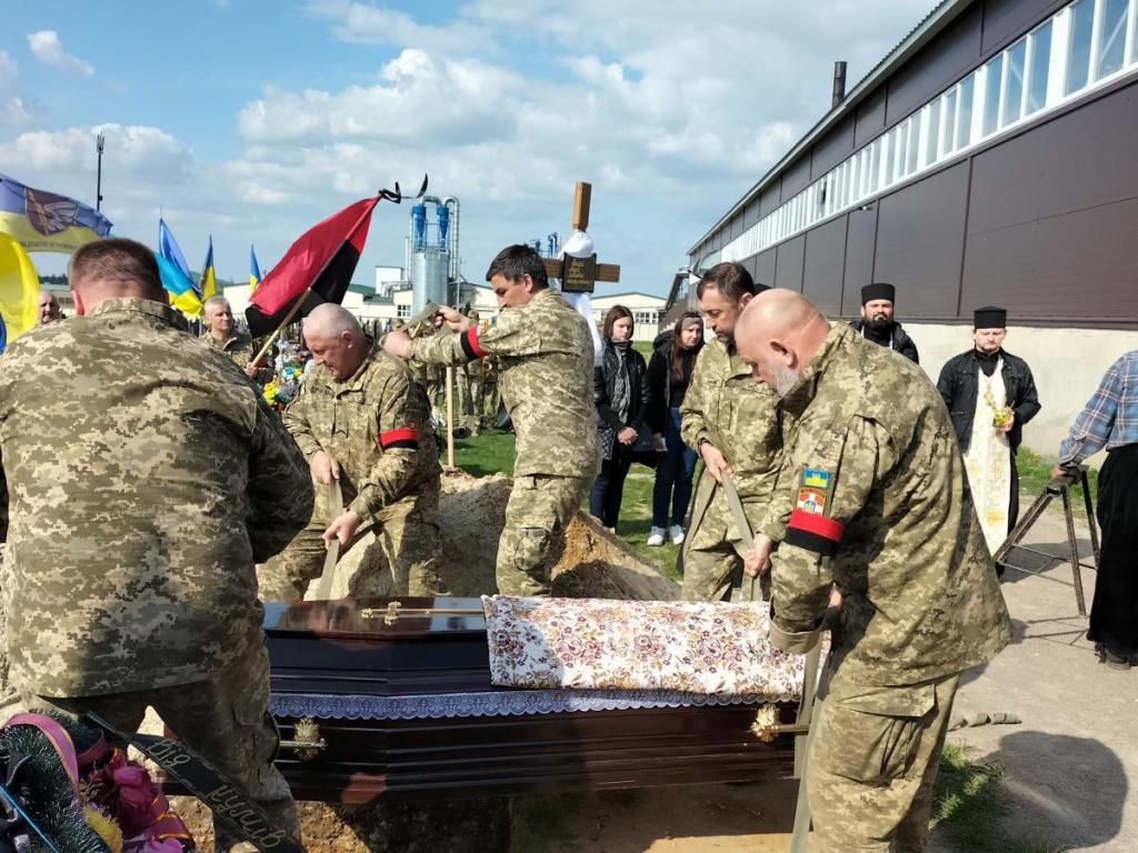 «Спільна молитва за душу невинно вбитого захисника України, останнє прощання з рідними і тіло Героя під гучні постріли та мелодію Державного Гімну назавжди приймає рідна земля.