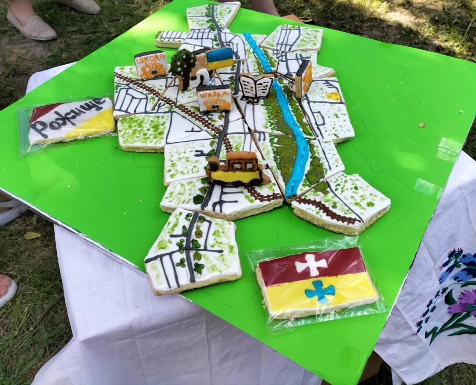 Оригінальними були і працівники КЗ «Публічна бібліотека», які представили цікаву бібліолокацію «Я люблю Рожище», родзинкою якої стала випечена бібліотекарем Оксаною Глинюк та складена з патріотичного печива карта міста.