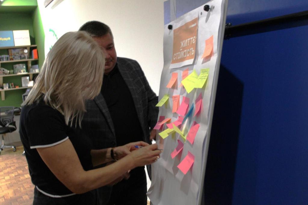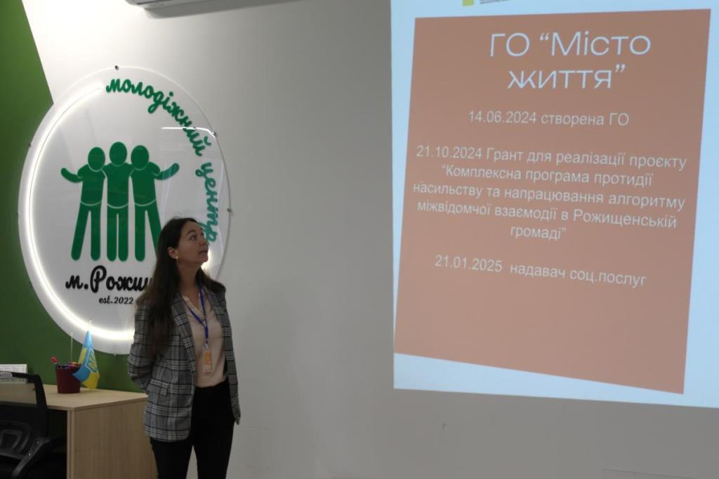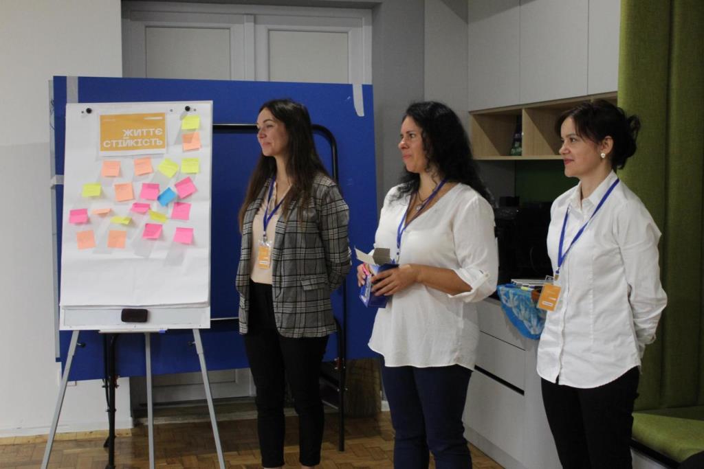 Голова громадської організації “Громадський простір “Місто життя” Катерина Райниш презентувала учасникам зустрічі алгоритм надання комплексної послуги формування життєстійкості, наголосивши, що у Центрі життєстійкості працюватимуть групи підтримки, освітні ініціативи та консультації з психологами й соцпрацівниками.