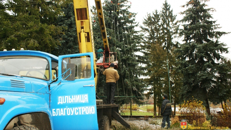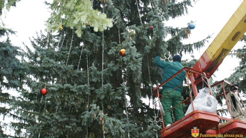 Задля створення святкового настрою працівники комунального підприємства «Дільниця благоустрою» почали роботи з прикрашання головної ялинки громади на центральній площі Незалежності в Рожищі.