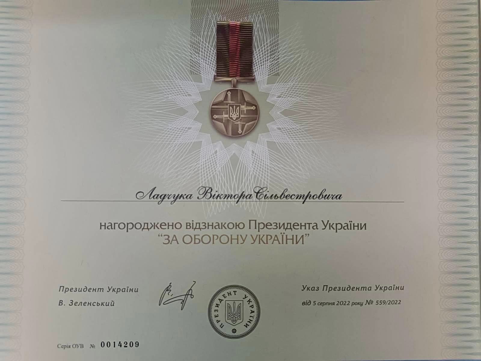 Відзнакою Президента України «За оборону України» нагородили Віктора Ладчука та Леоніда Клімішина з Навоза.