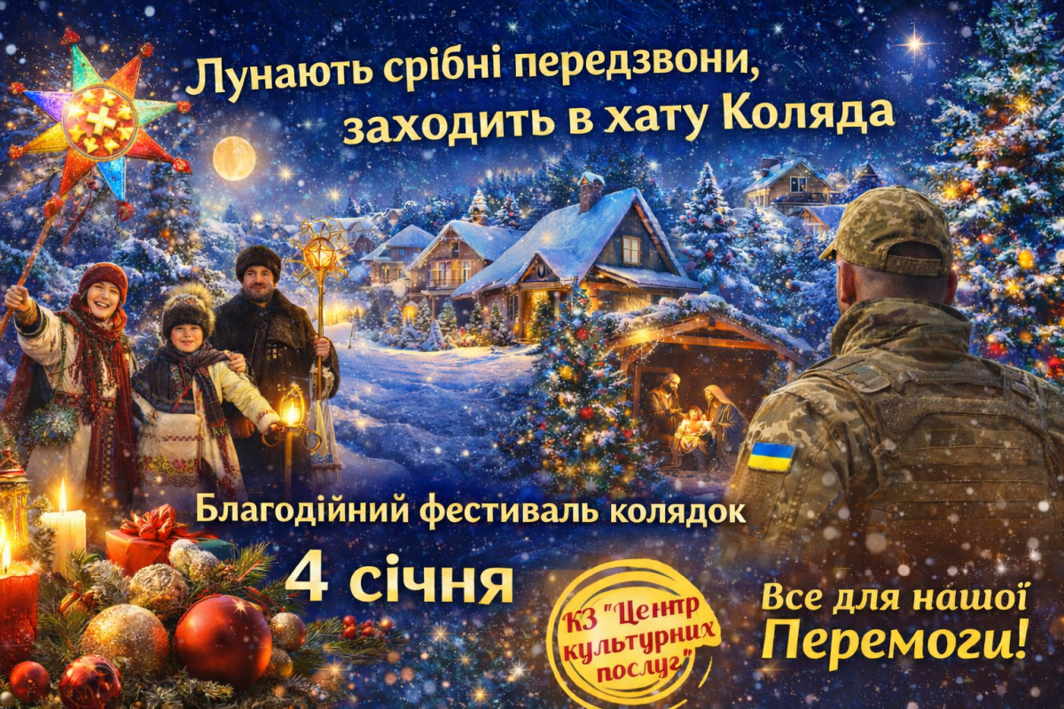 У неділю, 4 січня, простір КЗ «Центр культурних послуг» наповниться особливою магією – тут відбудеться благодійний фестиваль колядок «Лунають срібні передзвони, заходить в хату Коляда».