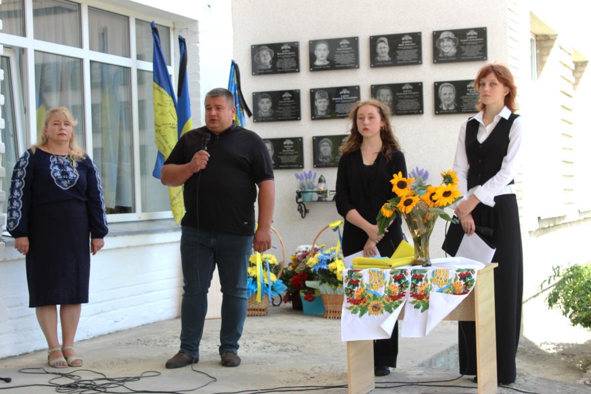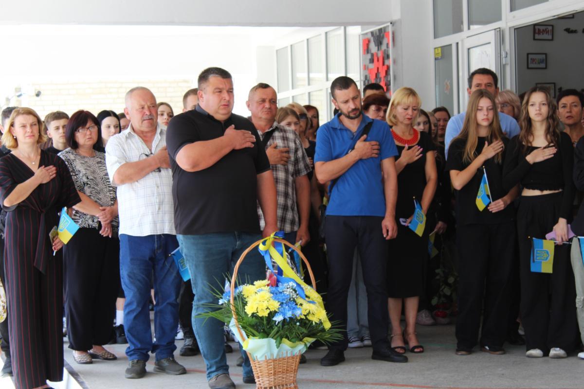 На шкільному подвір’ї зібралися учні, вчителі, представники влади, духовенство, родичі та друзі загиблого Героя, аби вшанувати пам’ять мужнього та відважного воїна, який віддав життя за Україну і за кожного з нас.