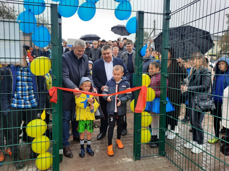 Урочисту червону стрічку перерізали дітлахи, які відвідують секцію футболу для наймолодших. Голова громади В’ячеслав Поліщук розповідає: футболом в спортшколі займається близько 200 дітей, але, впевнений, що тепер кількість спортсменів збільшиться.