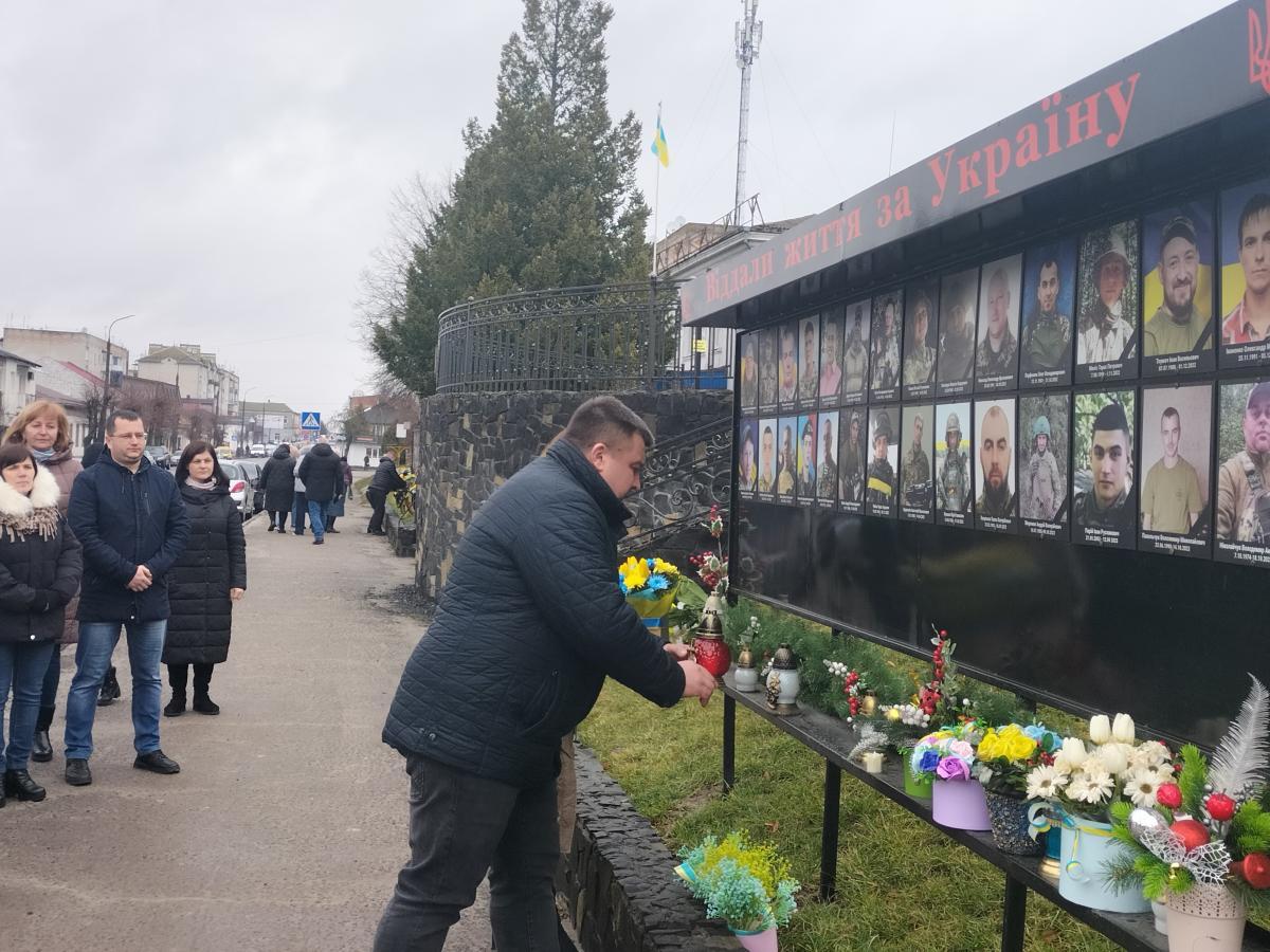 Пам’ятний захід завершився хвилиною мовчання та покладанням квітів до пам’ятного знака та Стел загиблим Героям.