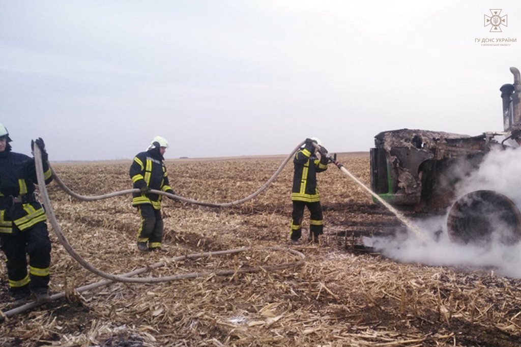 У с. Заболотці Литовезької громади на полі загорівся трактор. Горіння ліквідували рятувальники 18 ДПРЧ смт Іваничі. Причина встановлюється. Імовірно, пожежа виникла внаслідок займання кукурудзяного бадилля від нагрітого колектора.