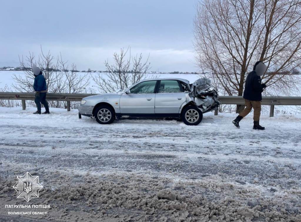 Автопригода трапилася сьогодні, близько 9:30, на автодорозі у селі Жидичин. Патрульні, які прибули на місце події, встановили, що водій Audi не стежив за дорожньою обстановкою, щоб мати змогу вчасно зреагувати на її зміну, не впорався з керуванням та виїхав та смугу зустрічного руху. Внаслідок цього він зіткнувся з вантажівкою DAF, що виконувала роль снігоприбиральної техніки.