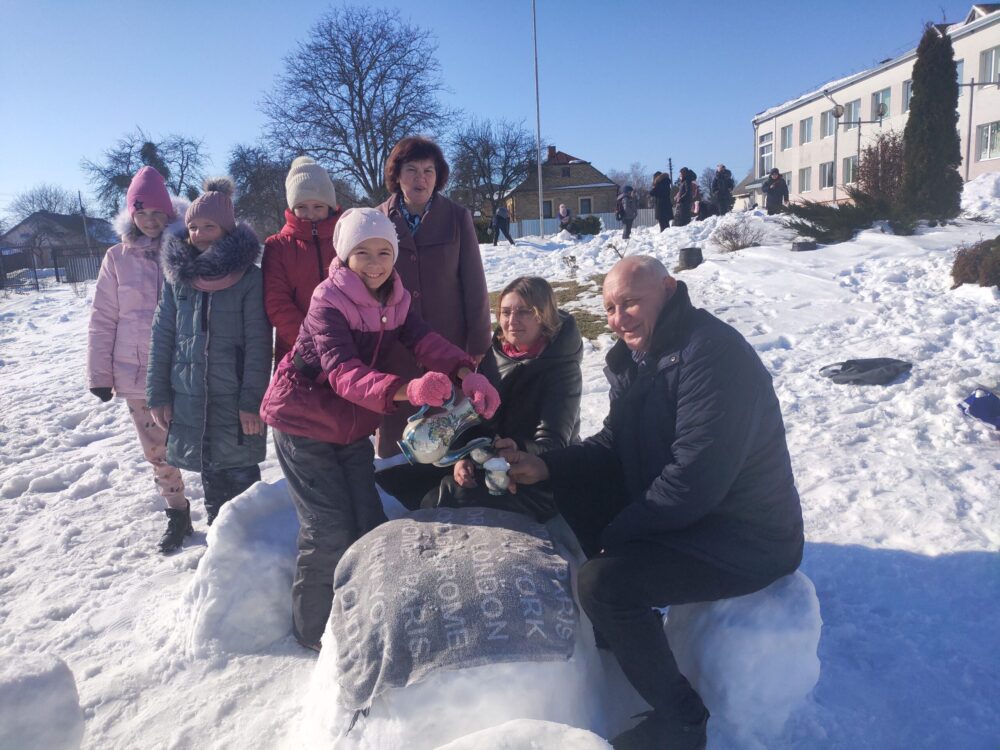У рамках мистецької акції зі снігу змайстрували фігурки сніговиків, українок, восьминога та навіть вежу. Кожен об’єкт творили натхненно та гуртом, отримуючи радість і задоволення від процесу.