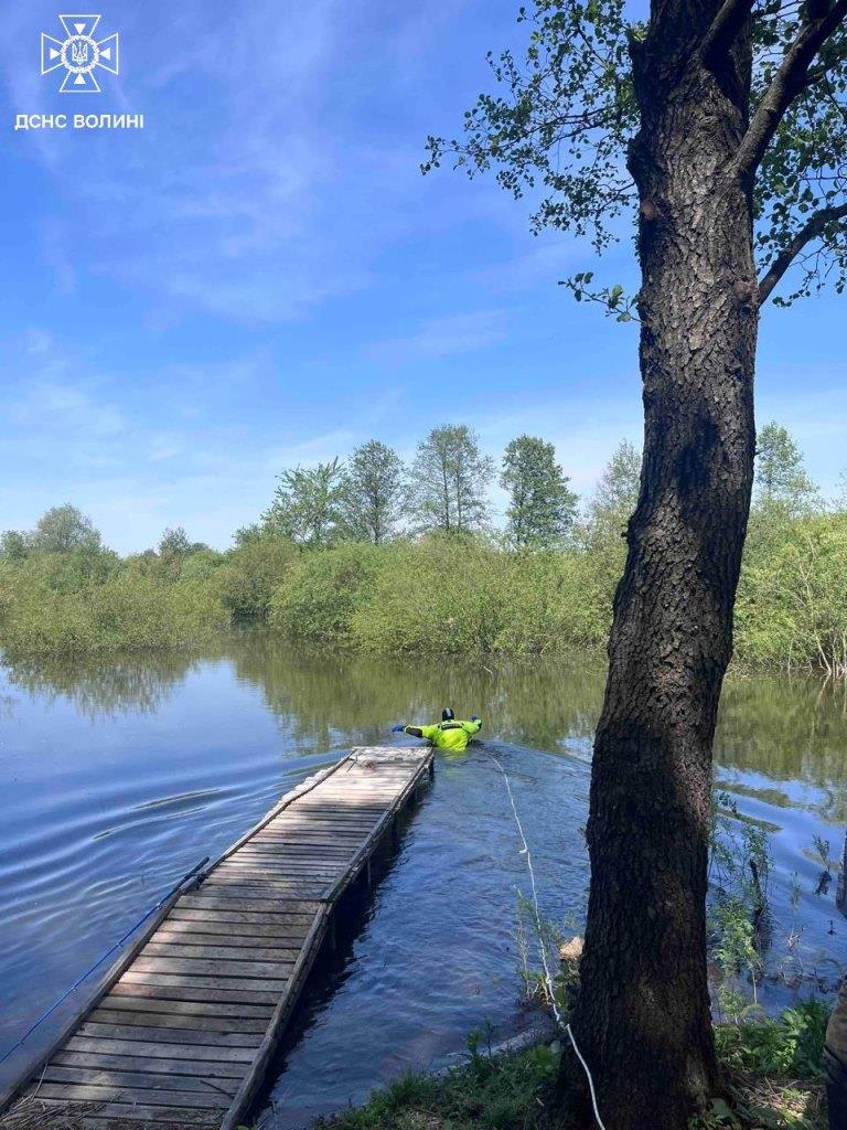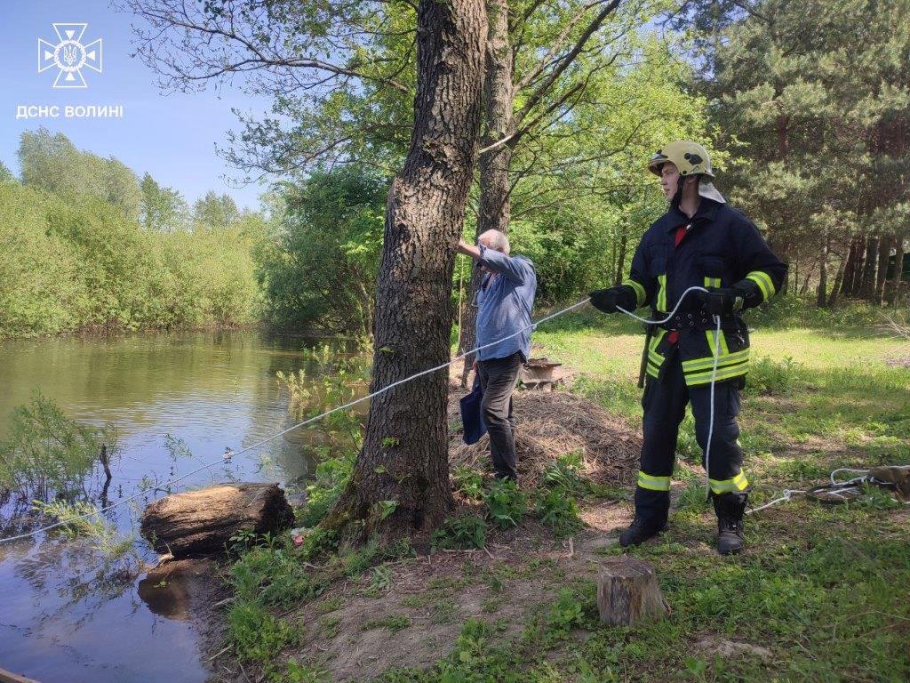 Відділення 1-ї Державної пожежно-рятувальної частини м. Луцька оперативно прибуло на місце події, один з вогнеборців одягнув спеціальний водолазний костюм та вплав дістався до рибалки, який перебував на відстані близько 30 метрів від берега. Людину благополучно доправили до берега, де йому надали допомогу медики.