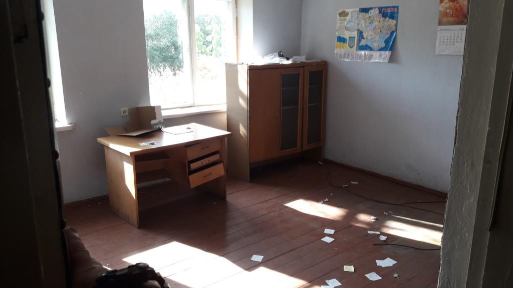 «Будівля адмінприміщення з гаражем «А-1» загальною площею 141,8 метра квадратного. Будівля одноповерхова, відключена від мереж електропостачання. Площа гаража 22,5 метра квадратного, площа адмінприміщення – 119,3 метра квадратного. Площа забудови – 185,3 метра квадратного. Фундамент бетонний стрічковий, стіни – цегляні, перегородки – цегляні, перекриття – дерев’яне, підлога – дошки по лагах, покрівля – 2-х схилий шифер, вікна, двері – дерев’яні. Загальний технічний стан будівлі – задовільний», – йдеться в описі лоту.