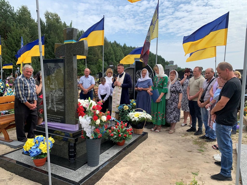 Отець Роман Скірак, настоятель Свято-Михайлівського храму селища Шацьк, звершив заупокійну молитву за Героя та освятив пам’ятник.