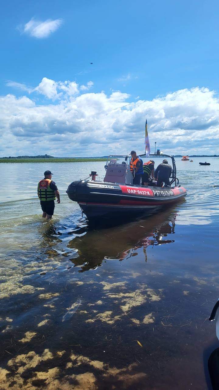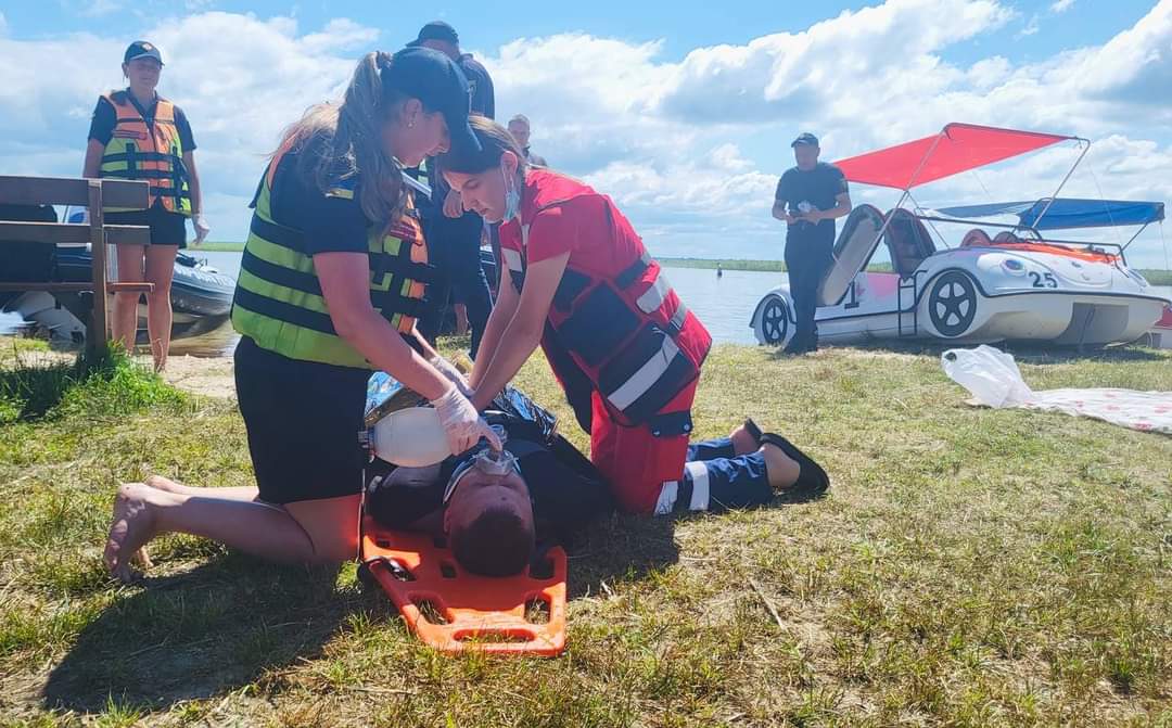 Разом з цим, рятувальники-водолази селища Шацьк провели тренування з порятунку людей на воді. За легендою навчань, внаслідок шторму на Світязі далеко від берега перевернувся катамарани, на якому перебували люди. Рятувальники доправили потерпілих на берег, а фельдшер водолазного відділення надав їм першу домедичну допомогу.