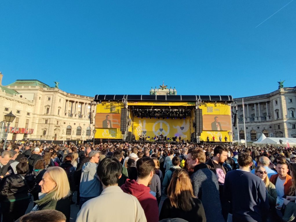 Зі сцени також звернувся президент Австрії Олександр Ван дер Беллен, який прийшов на концерт зі своєю дружиною. Він привітав сильний знак солідарності з людьми з України та людьми, які були змушені залишити свою батьківщину.