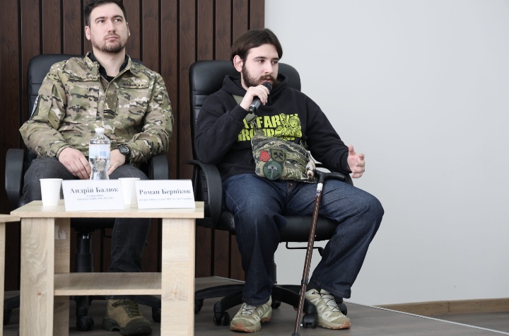Діалог модерували практичний психолог ЗВО Тетяна Кулик і фахівець Центру з організації базової загальновійськової підготовки Андрій Лев. У фокусі розмови – людина на війні: її внутрішній світ, втрати та їхнє прийняття, щоденний вибір і сила, що народжується та підтримує навіть у найтемніші моменти.