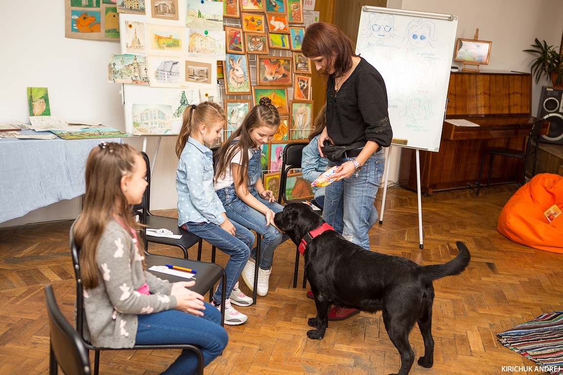 16 вересня у Волинській обласній бібліотеці для юнацтва відбулись чергові заняття для двох груп із каністерапії – проекту сімейного читання «Почитай мені: читання чотирилапому другу».