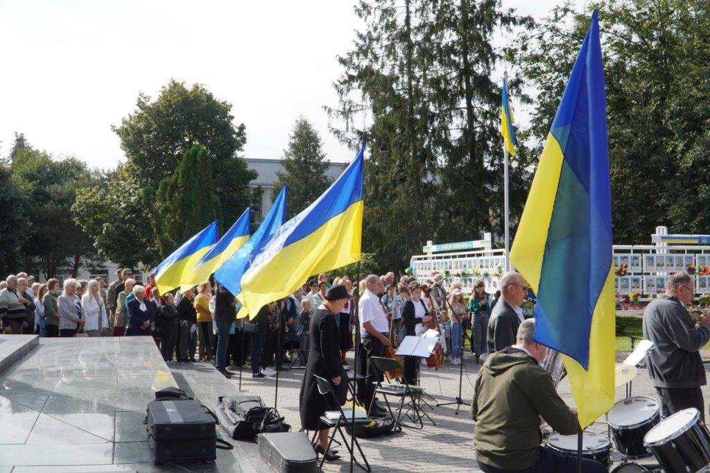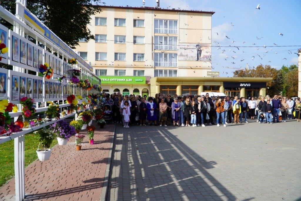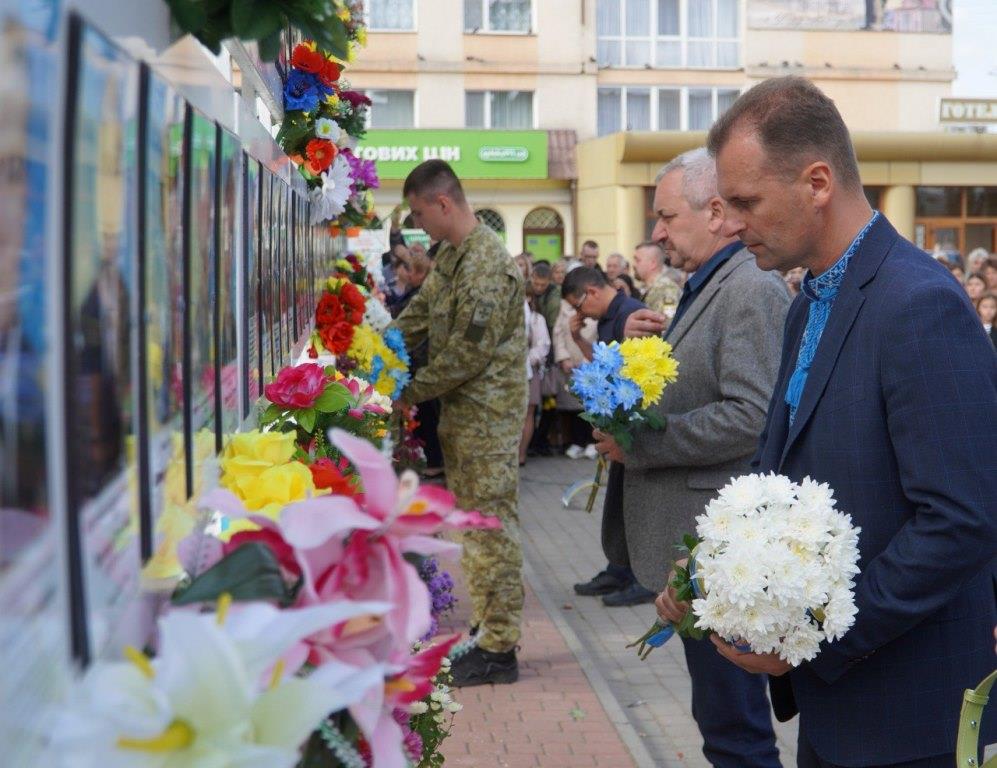 1 жовтня опівдні біля дошки із портретами полеглих героїв громади на площі Героїв міста відбулися пам’ятні заходи з ушанування захисників, які віддали життя у війні із російським агресором.