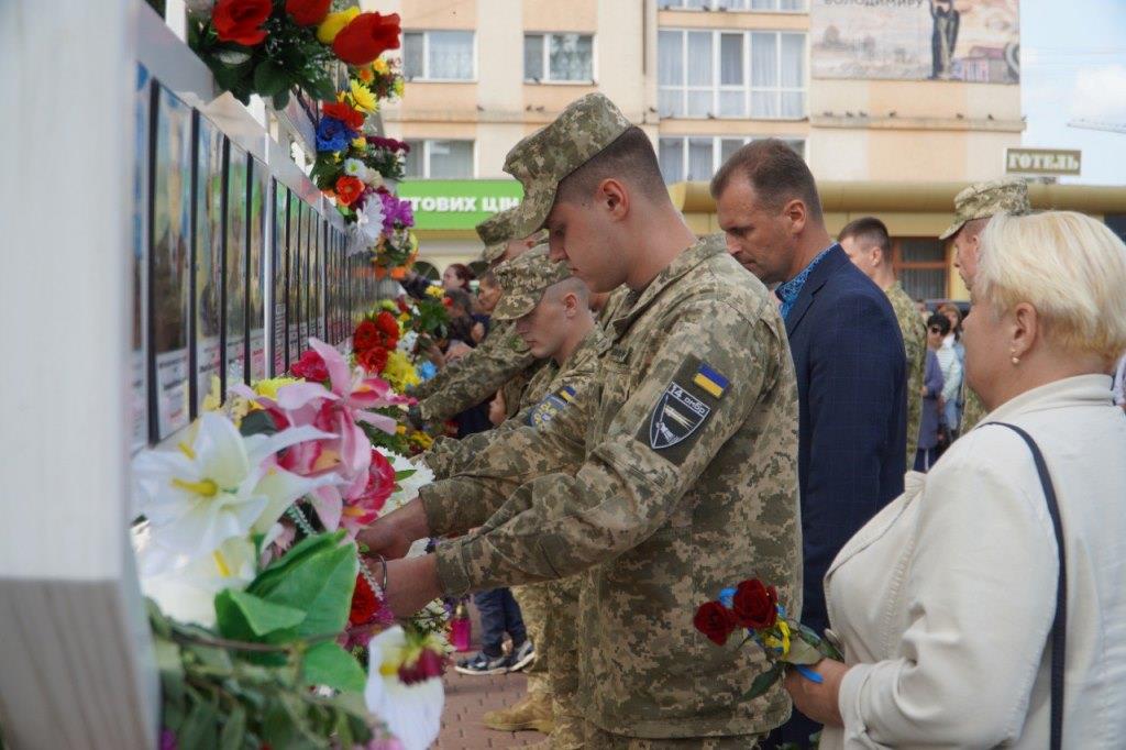 Володимирський міський голова Ігор Пальонка із заступниками, представники району, військовики взяли участь у покладанні квітів до оновленої дошки полеглих Героїв, святі отці її освятили, після чого члени родин загиблих поспішили до світлин із рідними обличчями.