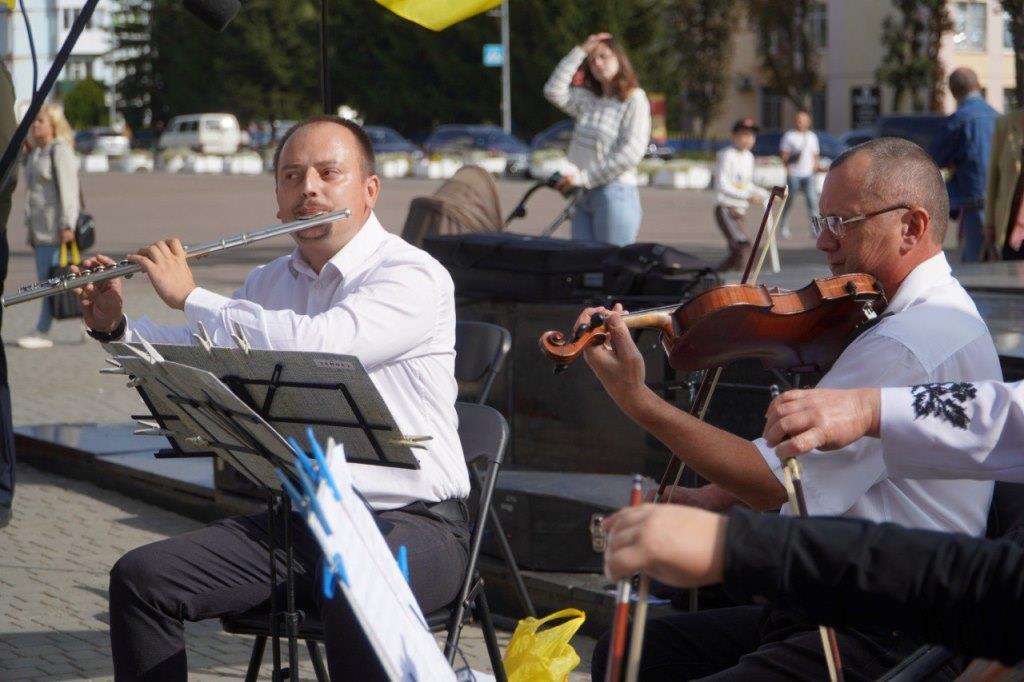 Захід проходив у супроводі музикантів дитячої музичної школи. Його розпочали знаменитою «Мелодією» Мирослава Скорика, яка є уособленням зраненої і ніжної душі України. Партію віолончелі виконував син загиблого Героя Олега Митошопа, одинадцятирічний Зореслав.