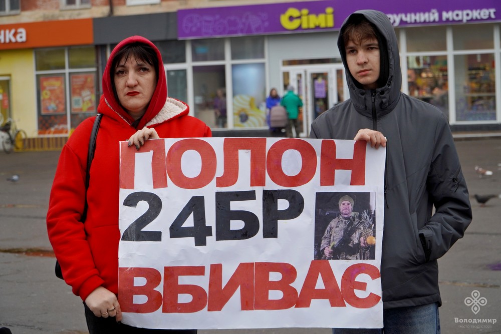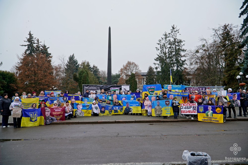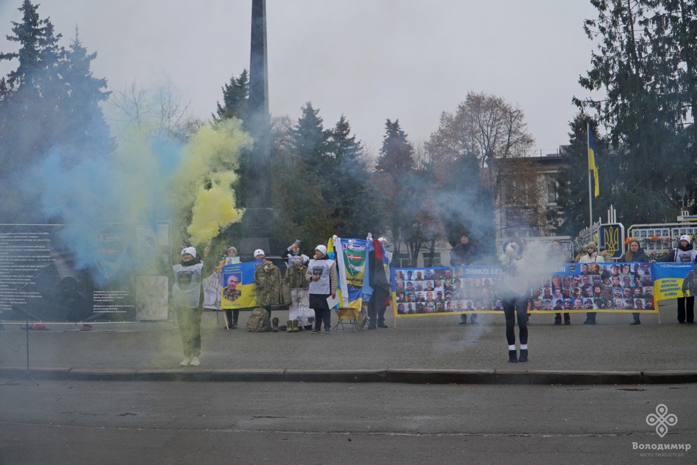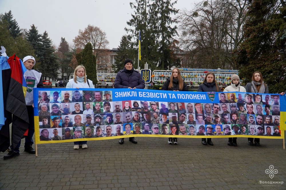 У суботу, 16 листопада, у Володимирі на центральній площі Героїв відбулася мирна акція на підтримку військовополонених та зниклих безвісти захисників України. Людей не злякав прохолодний осінній дощ, який мрячив надворі, адже військовослужбовці та полонені часто перебувають у значно гірших умовах.