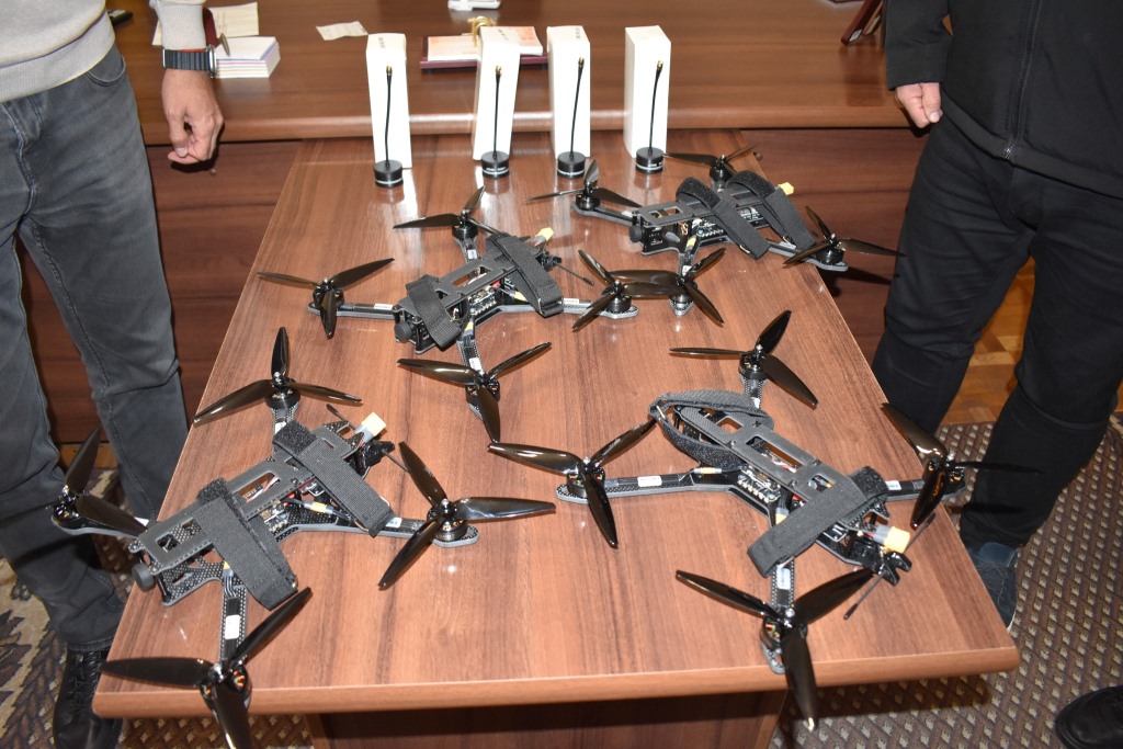 4 жовтня чотири FPV-дрони передав під час зустрічі з начальником районної військової адміністрації Юрію Лобачу очільник ТзОВ «ЮСТУС» Сергій Мацибора.