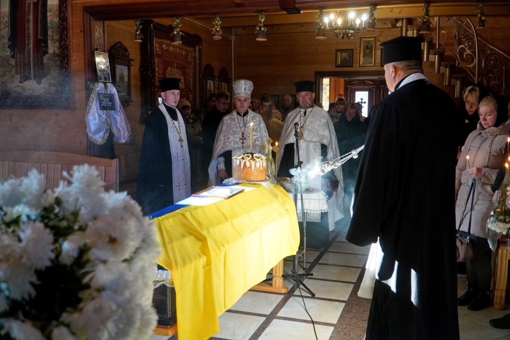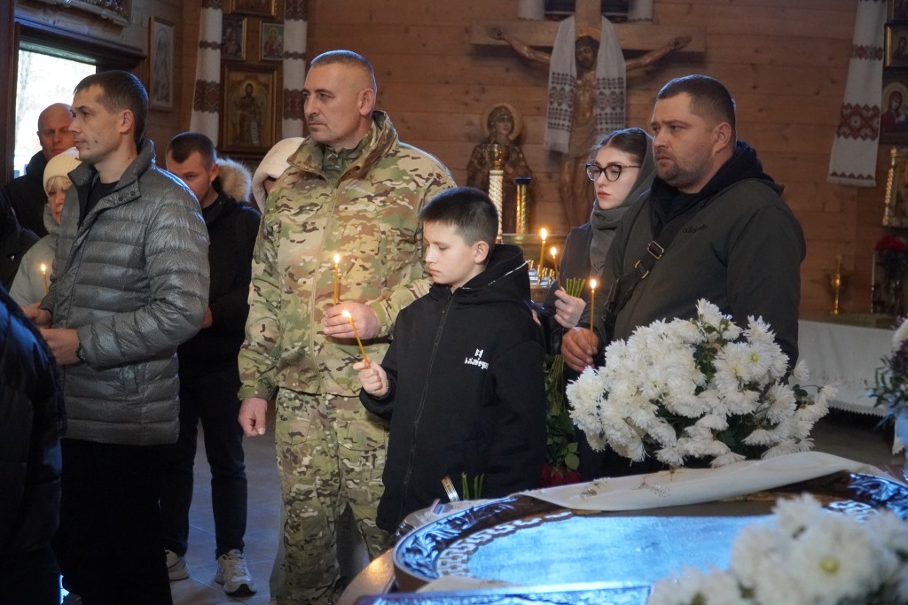 Містяни зустріли скорботний кортеж з тілом Бориса Леляка біля церковного подвір’я живим коридором. Попрощатись та віддати останню шану захиснику до храму Віри, Надії, Любові та матері їх Софії прийшли його рідні, близькі, бойові побратими, представники місцевої влади та небайдужі мешканці.