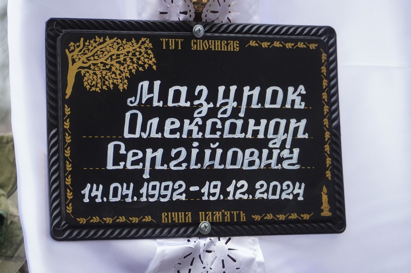 Поховали Олександра Мазурка з усіма військовими почестями на Алеї Героїв Федорівського кладовища.