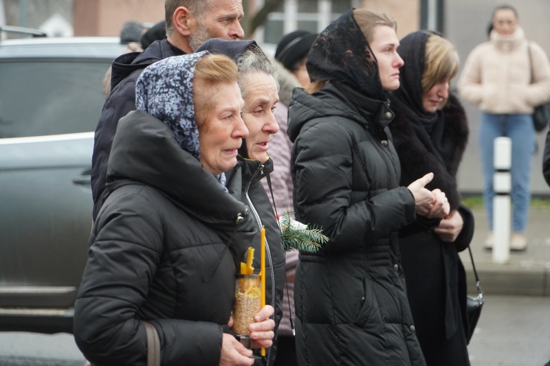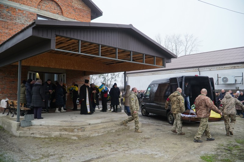Прощання з полеглим воїном розпочалось у нього вдома на вулиці Січових Стрільців, звідки процесія у супроводі військового оркестру пішки вирушила до храму Святого Пантелеймона, що знаходиться неподалік.