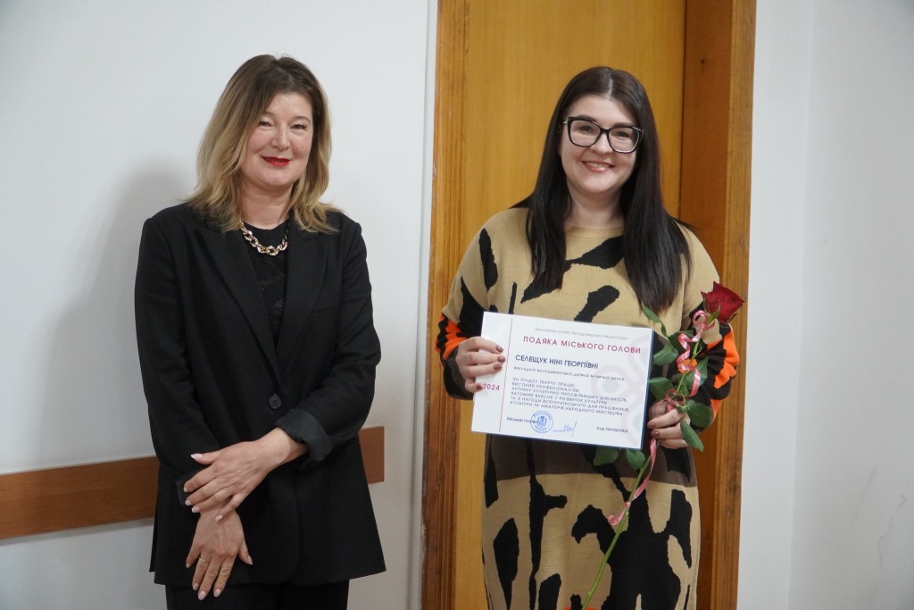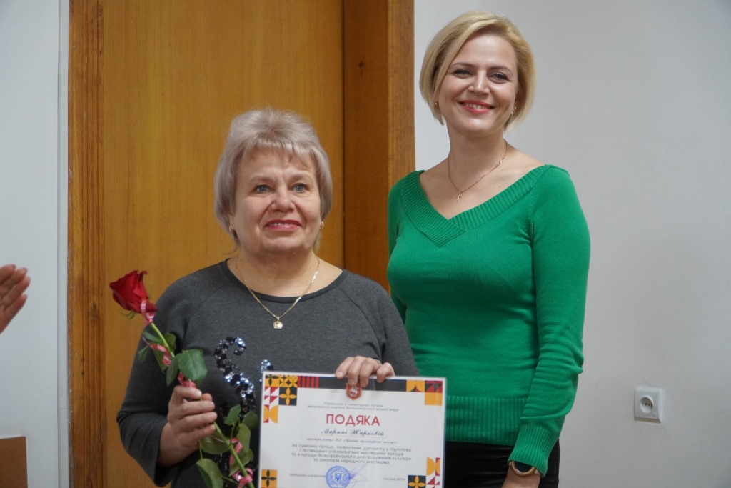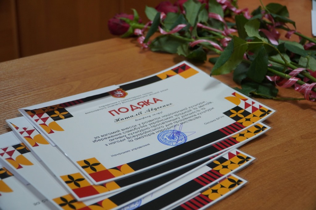 Подякувавши працівникам культури та митцям за ревне збереження надбань українського народу і його традицій, за просвітництво, побажавши безлічі мистецьких ідей, належного фінансового ресурсу для їх втілення, всебічної підтримки, наснаги, з нагоди свята вони вручили подяки міського голови та управління з гуманітарних питань і грошові нагороди: