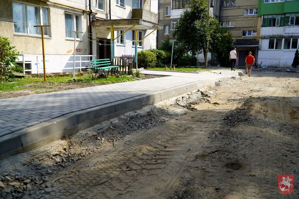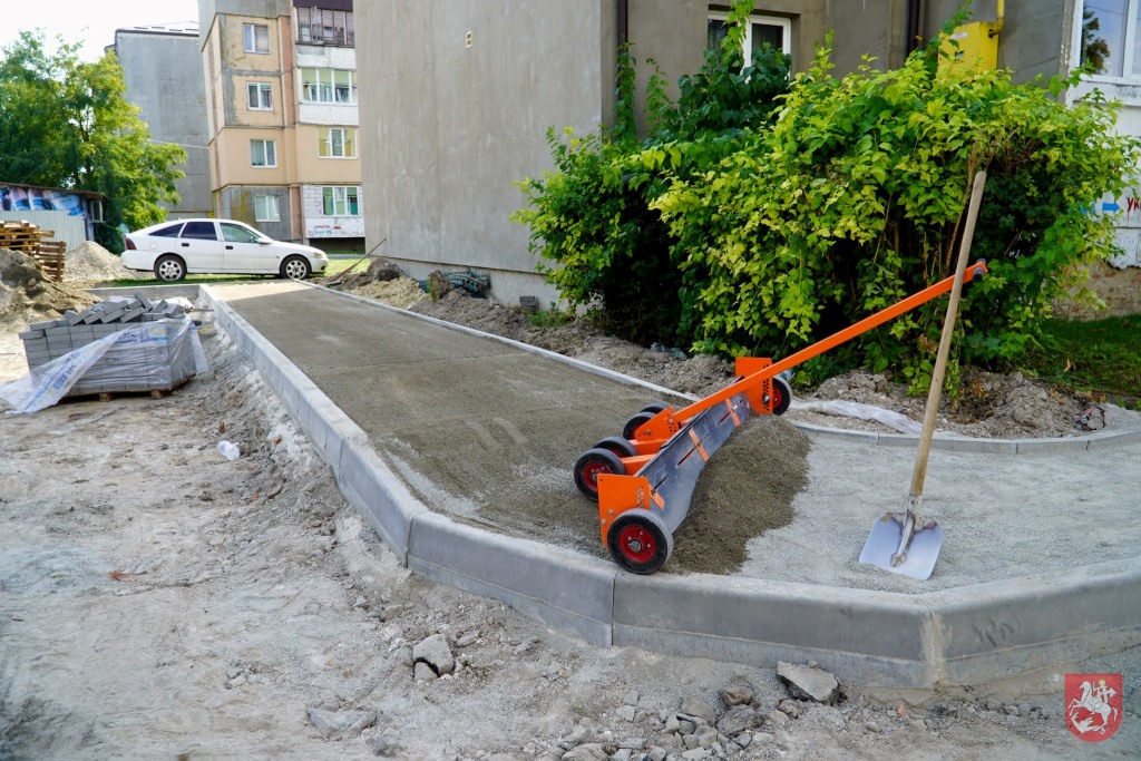 У місті ремонтують двори. На вулиці Поліської Січі, 49, 51 роботи виконує ПП «РОСТРАНС».