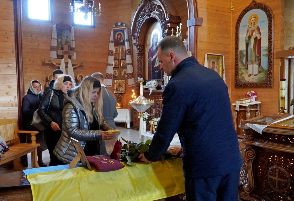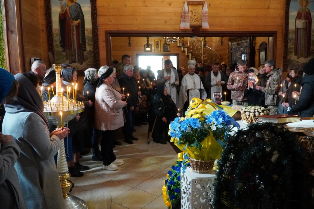Побратими, друзі, з якими разом навчався, сусіди – усі прийшли віддати шану воїну. Під час панахиди у храмі Віри, Надії, Любові та матері їх Софії отець Євген Рябець зауважив, що полеглий офіцер виконав найвищу з місій – віддав життя за ближнього свого.