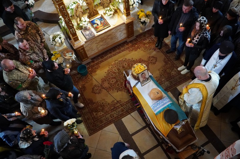 До храму Віри, Надії, Любові та матері їх Софії попрощатись із полеглим захисником прийшли сотні містян – рідні, близькі, друзі, однокласники та небайдужі жителі разом оплакували передчасно обірване молоде життя Героя.