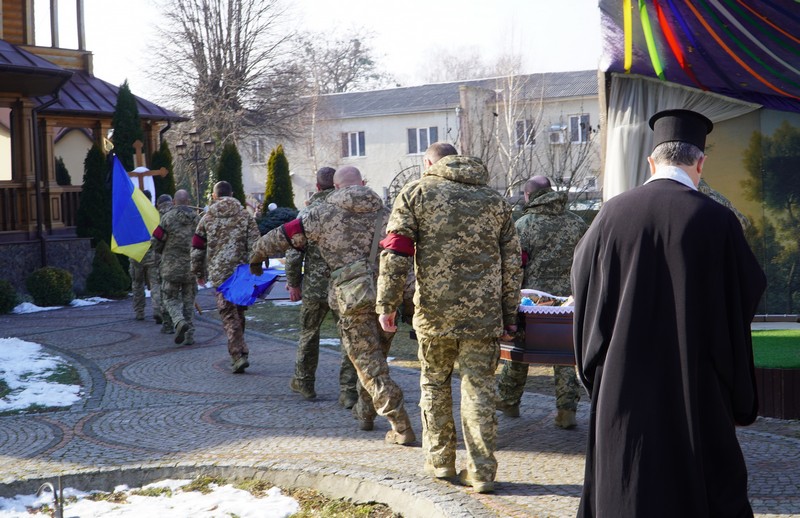 Прощались із полеглим під акапельний супровід хористки, яка виконувала стрілецьку пісню “Журавлі” зі зворушливим “Чуєш: кру-кру-кру, в чужині умру, заки море перелечу, крилонька зітру…”
