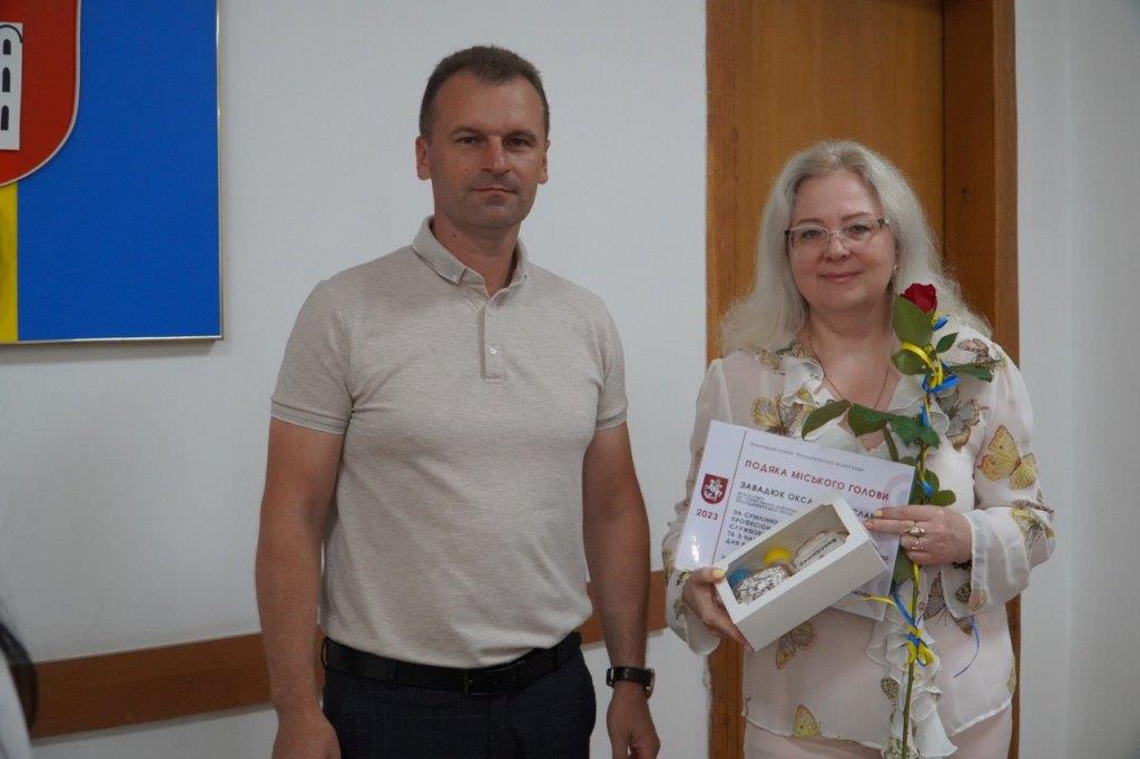 За сумлінну працю, високий професіоналізм, добросовісне виконання службових обов’язків квіти, подяки та подарунки цього дня міський голова вручив: